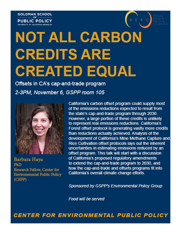 CEPP Event: Not All Carbon Credits are Created Equal: offsets in California’s cap-and-trade program